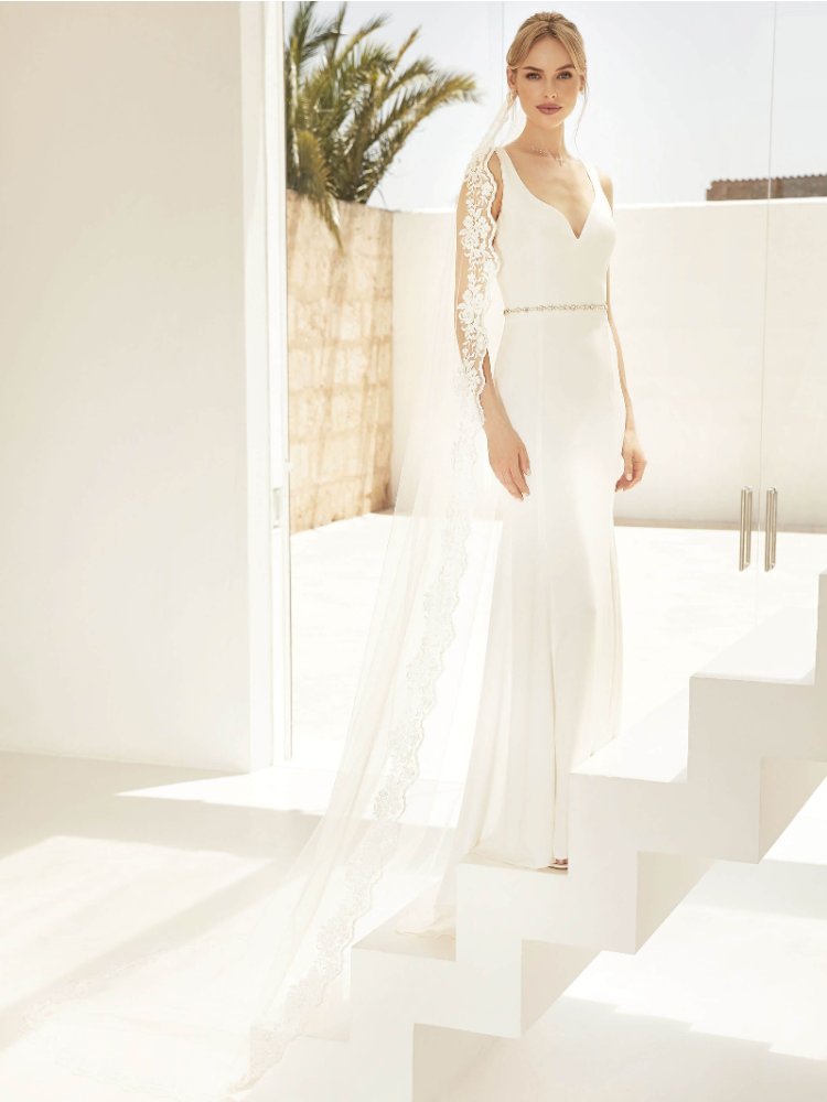 Deze elegante sluier van Bianco Evento maakt je bruidslook helemaal af. Deze eenlaagse sluier is gemaakt van diamant tule met een kanten randje met glazen kraaltjes. Aan de sluier is een kam bevestigd, zodat je de sluier gemakkelijk in je haar kunt doen.