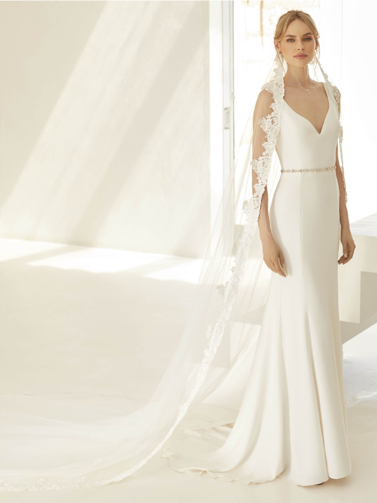 Deze elegante sluier van Bianco Evento maakt je bruidslook helemaal af. Deze eenlaagse sluier is gemaakt van diamant tule met een kanten randje met glazen kraaltjes. Aan de sluier is een kam bevestigd, zodat je de sluier gemakkelijk in je haar kunt doen.