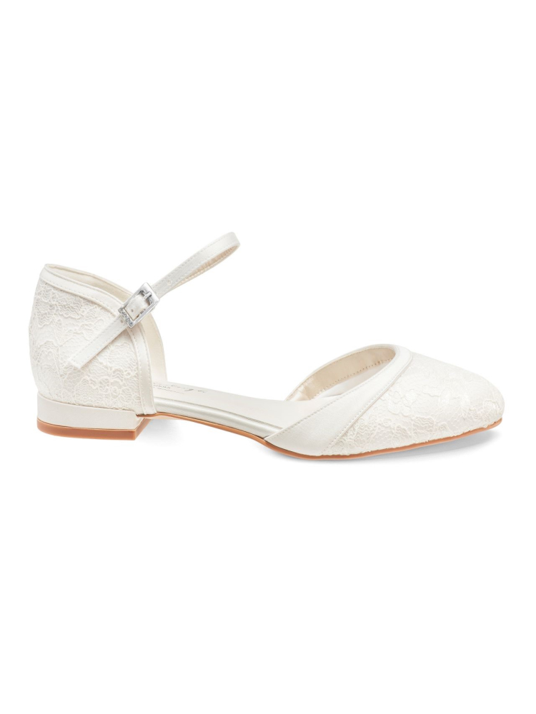 Lana is een exclusieve bruidsschoen die met de hand is gemaakt en een klassieke stijl heeft. De sandalen zijn van satijn met kantbekleding, en door de platte hak zijn ze zeer comfortabel. Deze bruidssandaal past bij elke bruidsjurk!