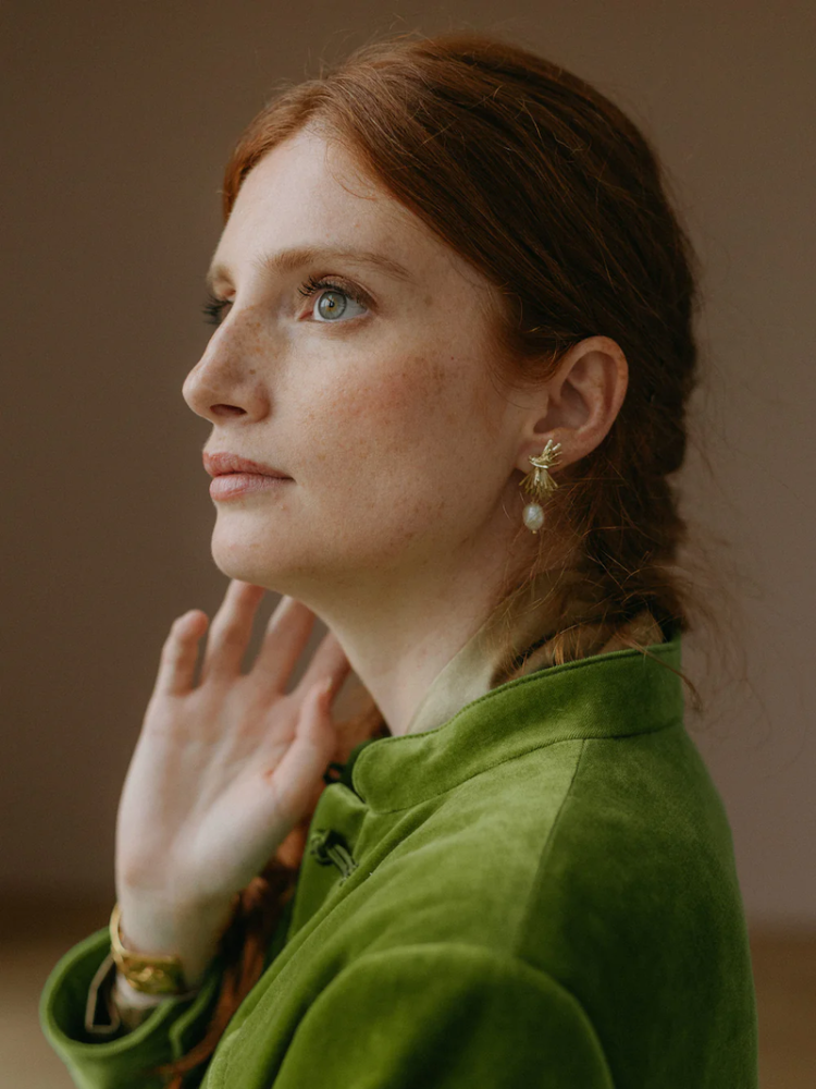 Ze zijn gemaakt van een vintage broche die is gevonden op een vlooienmarkt in Lorient, Frankrijk, en omgevormd tot een uniek sieraad. Het ontwerp bevat echte zoetwaterparels, die een vleugje natuurlijke schoonheid toevoegen. Elk paar is met de hand gemaakt in Parijs en verguld met fijn goud, wat ze een warme, stralende afwerking geeft.