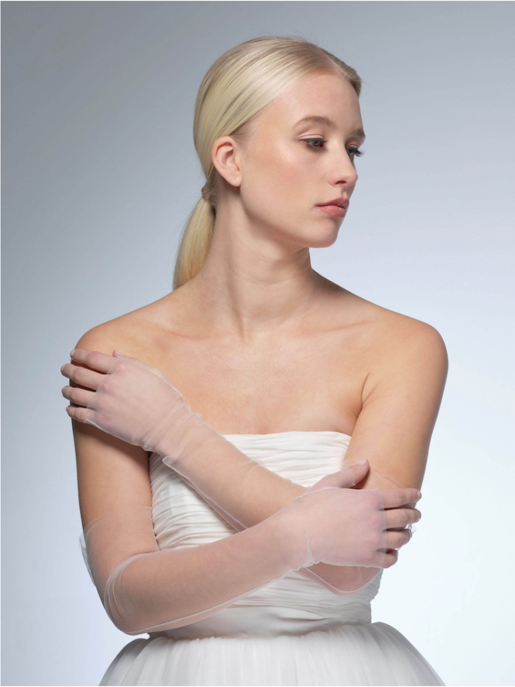 Til je bridal look naar een hoger niveau met de Essential Collection trouwhandschoenen van Poirier. Deze tijdloze vingerloze handschoenen, vervaardigd van zachte ivoorkleurige tule, bieden een vleugje elegantie aan je trouwoutfit en passen moeiteloos bij verschillende jurken. Met een luxueuze lengte van 54 cm (21,2 inch), verrijken de Poirier GL-76006 Handschoenen je speciale dag.