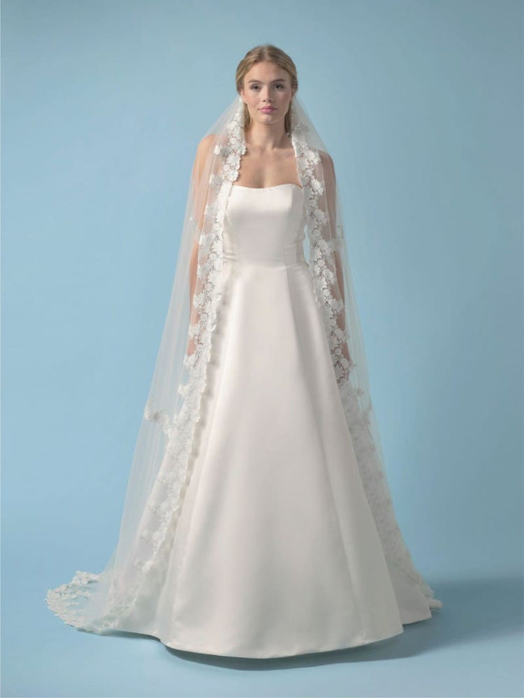 Deze elegante ivoorkleurige sluier van Poirier maakt je bruidslook helemaal af. Deze enkellaagse sluier is gemaakt van zachte tule versierd met geborduurde bloemen aan de rand en applicaties verdeeld over de hele sluier. De lengte van de sluier is 280 cm (150 cm ook verkrijgbaar).